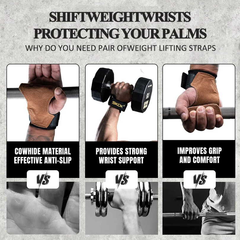 These Cowhide Gym Grip Gloves are designed to enhance your lifting performance and protect your hands. Made from premium cowhide leather, they provide superior durability and comfort. The anti-skid surface ensures a strong grip during intense workouts. Perfect for weightlifting, deadlifts, pull-ups, and cross-training sessions. The open-hand design allows better ventilation and reduces sweat buildup. Built with a secure wrist strap to prevent slipping and ensure stability. Helps prevent calluses, blisters, and palm strain. Lightweight and easy to wear for both men and women. Ideal for beginners and professional athletes alike. Elevate your strength training with these reliable and durable gym grip gloves.