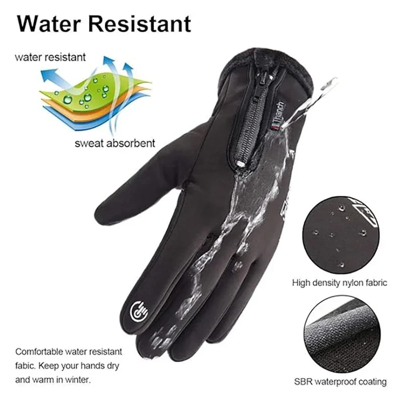Stay warm and connected during cold weather rides with these Winter Multi-functional Fleece Zipper Cycling Gloves. Lined with soft, thick fleece material, these gloves provide superior insulation to keep your hands comfortably warm in chilly outdoor conditions. The multi-functional design includes highly conductive fingertips, allowing full use of your smartphone or GPS without removing the gloves via Touch Screen compatibility. Featuring a reinforced palm with a specialized grip material, the gloves offer an excellent Anti-slip hold on handlebars, steering wheels, or equipment. A key convenience feature is the practical cuff Zipper, which allows for a snug, customized fit and makes the gloves easier to put on and take off. These gloves are versatile and Suitable Winter Outdoor Sports activities beyond cycling, including running, hiking, and driving. The exterior material is often water-resistant or windproof, adding an extra layer of protection against the elements. Designed for durability and dexterity, they ensure you maintain finger sensitivity for precise gear shifting or handling small objects. They are ideal for anyone seeking Warm, reliable hand protection for cold-weather adventures. Choose these essential fleece cycling gloves to ensure comfort, warmth, and connectivity throughout the winter season.